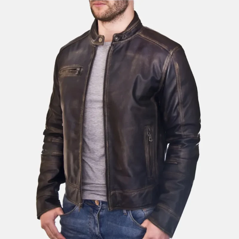 Men’s Classic Brown Cafe Racer Leather Jacket – Denver